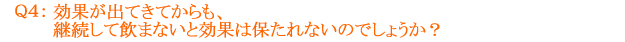 | あくまでも「健康補助食品」です。全く飲まなければ徐々に効果は無くなると思います。 |